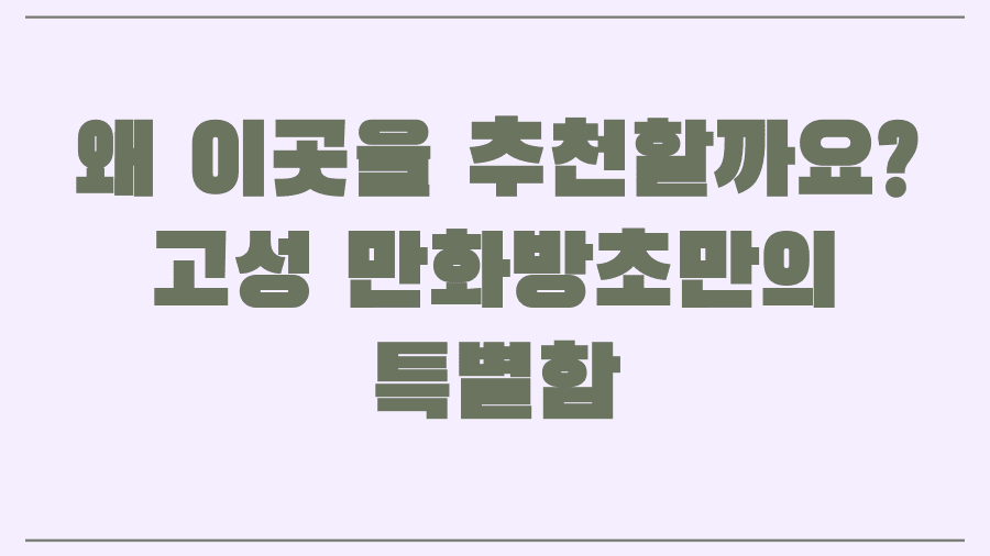 방문 전에 꼭 알아야 할 위치, 영업시간, 이용 요금부터 내부 분위기와 추천 이유까지, 여러분의 고성 만화방초 방문을 더욱 풍요롭게 만들어 줄 모든 정보를 꼼꼼하게 담았습니다.